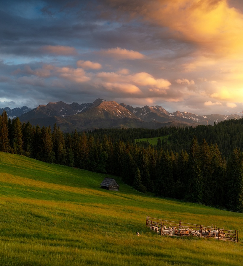 Obiecujemy – pobyt na Polanie Szymkówka to niezapomniane chwile. Bo czy może być coś piękniejszego niż niczym nieprzysłonięta panorama Tatr za oknem, rozgwieżdżone nocne niebo i kojący szum tatrzańskich sosen towarzyszący zasypianiu? A być może będziecie tymi szczęśliwcami, którzy usłyszą pomruki Halnego, bezpiecznie schronieni w prawdziwych, pasterskich szałasach – dokładnie tam, gdzie tradycja spotyka się z naturą.